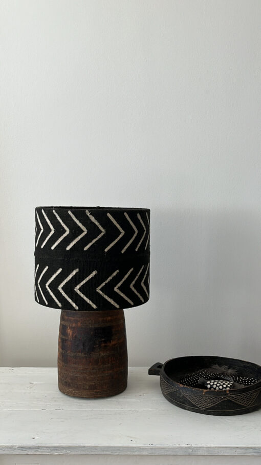 Lampshade made of mudcloth textiles. H20cm and W 25cm. The inside is covered with gold color. Mudcloths textiles are cotton cloths with mud symbols on it, they made in Mali.